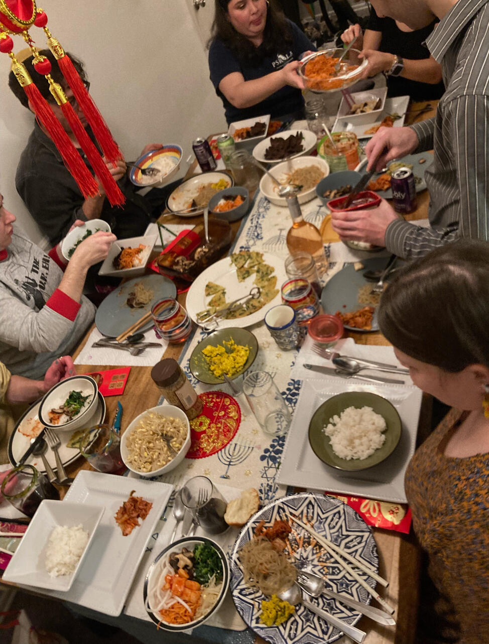 Our first Seollal Shabbat (pictured) was extra special, celebrating both Shabbat and the Korean/Lunar New Year to honor our community members' unique cultural traditions and experiences. Our fully kosher and (almost completely) vegan Seollal Shabbat dinner is one of our most popular events every year.Every NoHo Community Shabbat is unique; additionally, thanks to amazing community members (like you!), we occasionally we have the opportunity for extra-special Shabbats like these. We would love to build a network of local folks with private indoor or outdoor space (backyards, patios, etc.) who are open to hosting us every once in a while to help facilitate this. If that's you, reach out to nohocommunityshabbat at gmail dot com and let's make it happen!